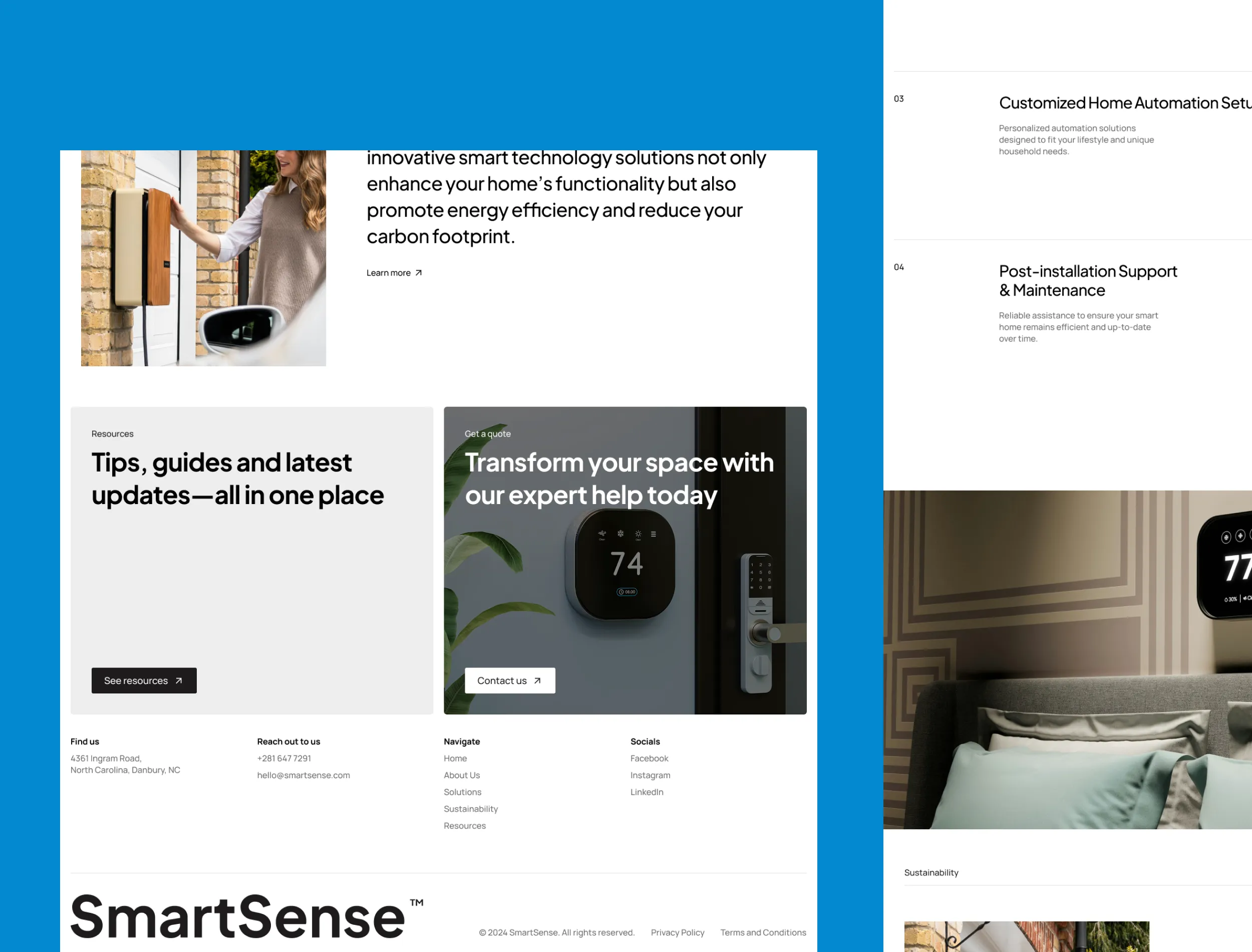 SmartSense is a conceptual brand that combines smart home technology with interior design. The goal was to create a polished digital presence that reflects a modern, solution-based service model.